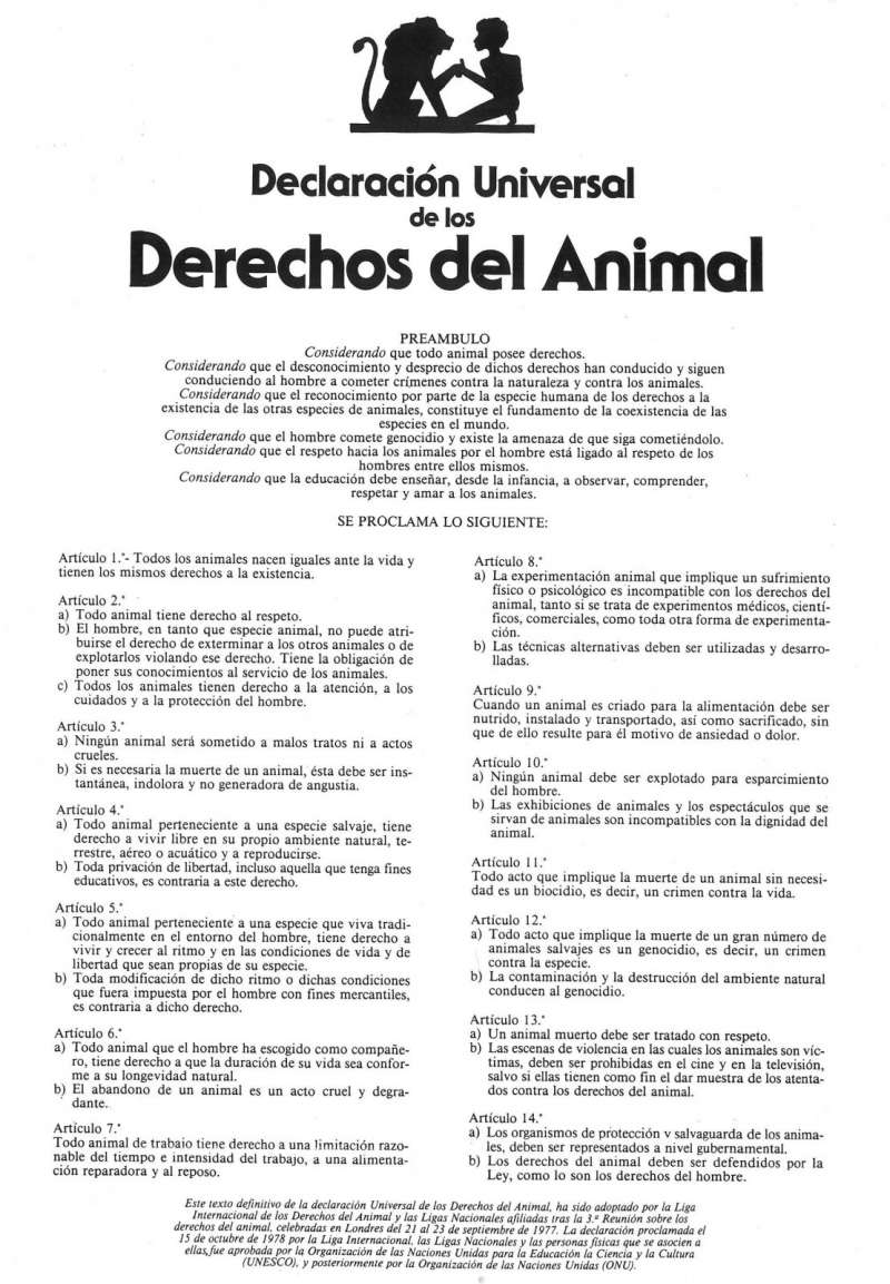 El mes de setembre de 1977, recent legalitzada ADDA i com a entitat membre de la Societat Internacional de Protecció dels Animals, WSPA, amb seu a Londres, va tenir la oportunitat d'intervenir i votar favorablement a la proposta de text de la Declaració Universal dels Drets del Animal, definitivament proclamada el 15 d'octubre de 1978. Des de la creació de la Societat Mundial per a la Protecció dels Animals, WSPA, que va absorvir la ISPA, l'ADDA va figurar com un dels membres fundadors i va mantenir la seva presència fins la seva disolució.